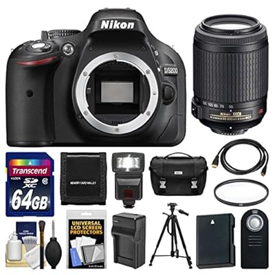 You're looking for Nikon D5200 Digital SLR Camera Body (Black) with 55200mm VR Zoom Lens 64GB Card Case Flash Battery Tripod Kit This is a quality product We recommend.